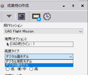 (標高ラスタやオルソモザイク成果物の作成に使用したい標高タイプを選択します)