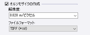 6) オルソモザイクの解像度とファイルフォーマットを設定します。
