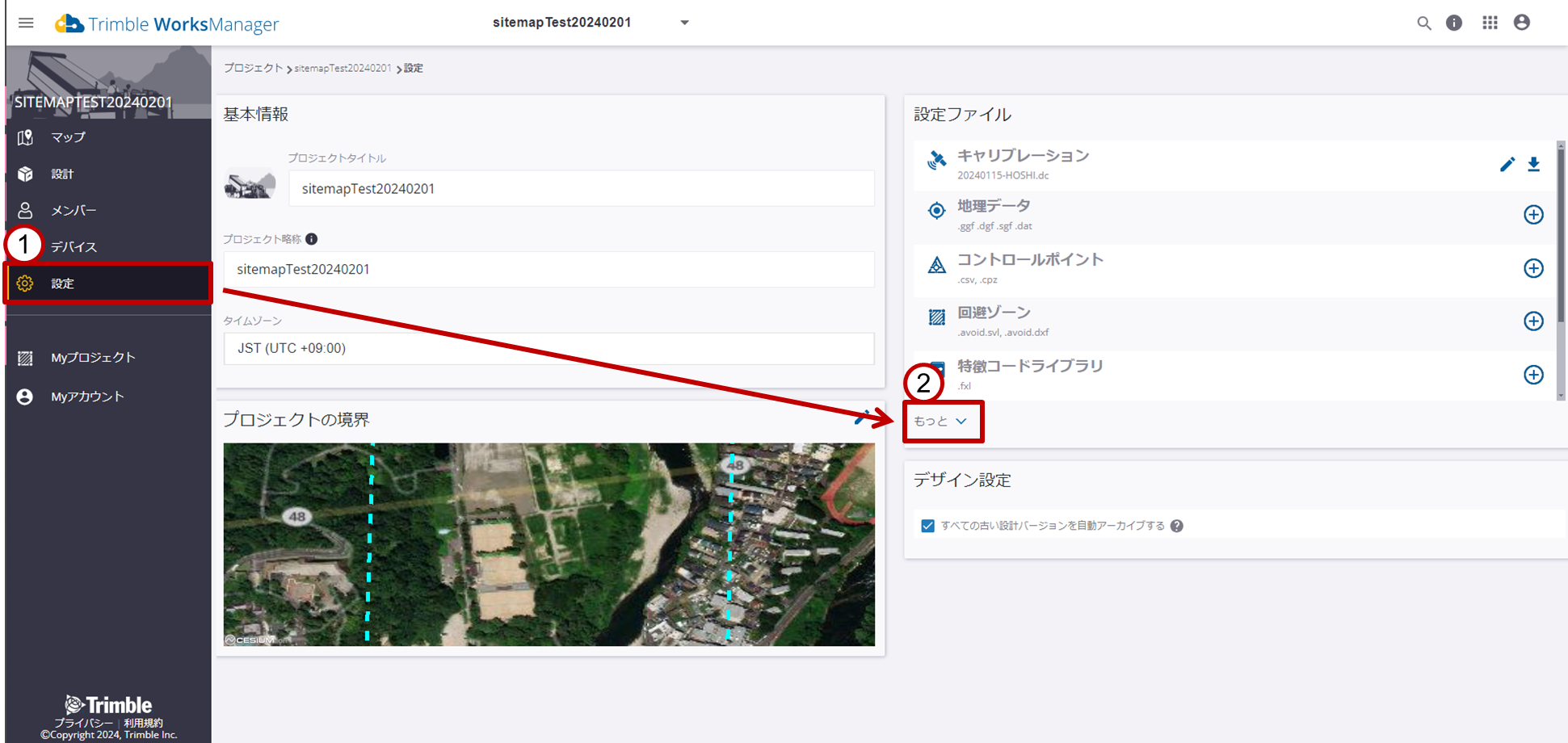 3) 設定を選択し、画面右側にある「もっと」をクリックする