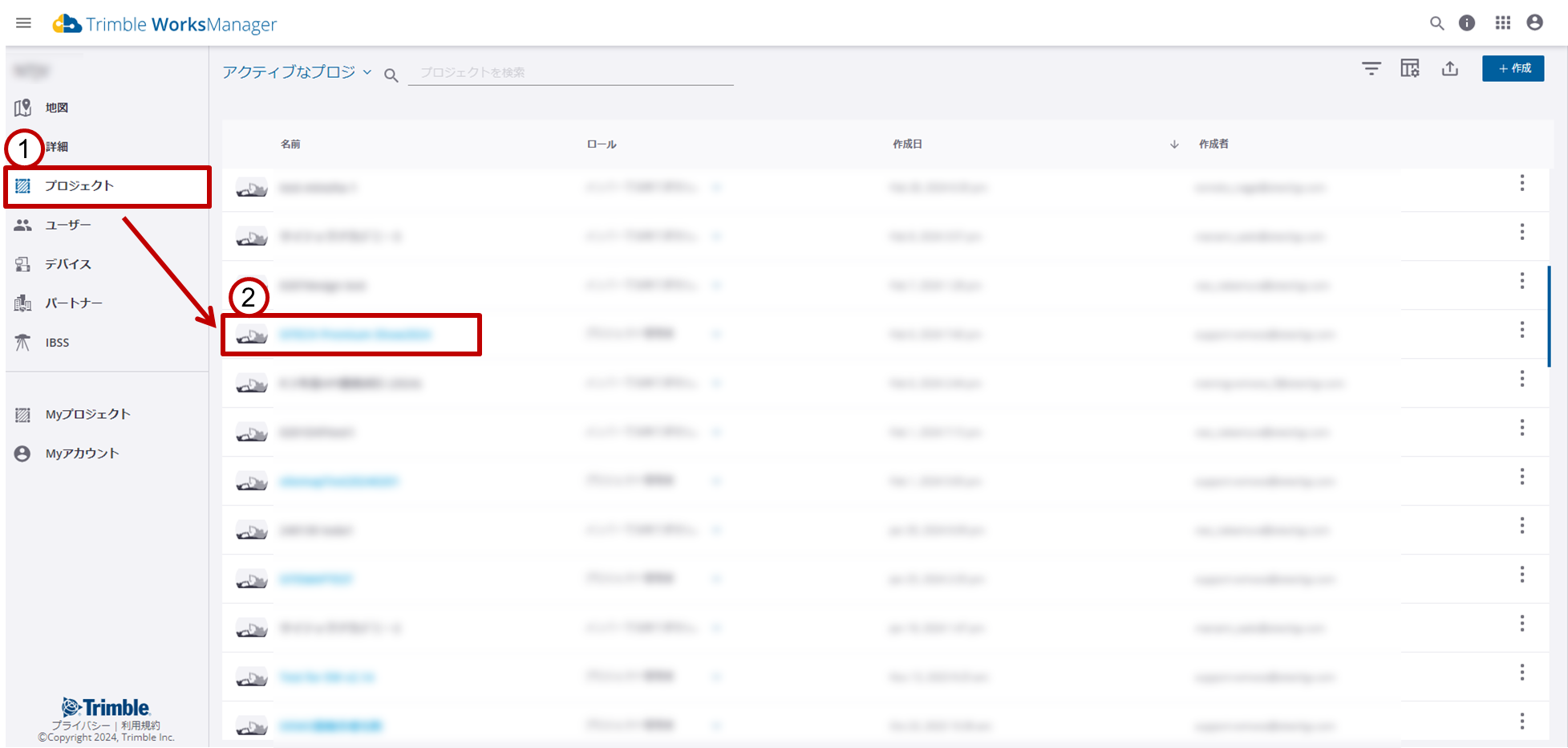 2) WorksManagerよりプロジェクトのページへ遷移する