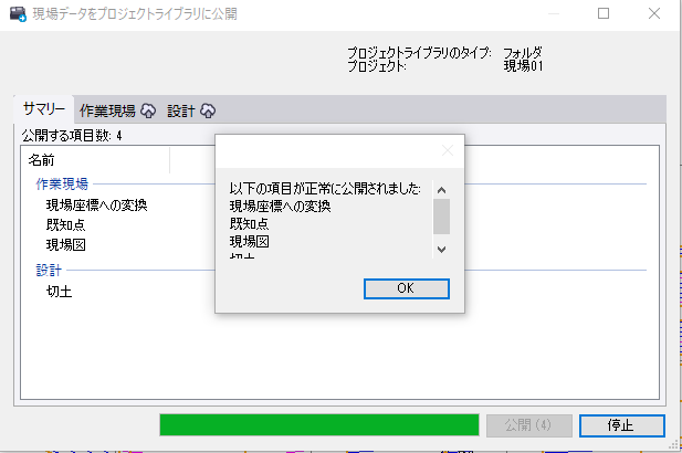 3.公開完了後、<OK>を選択しPCへのエクスポートを終了します。