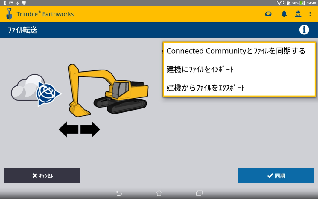 7.EarthworksオペレータUIを起動しUSBメモリを挿入後、<建機にファイルをインポート>を選択します。
