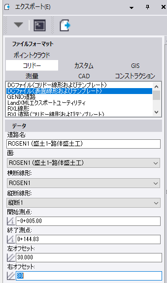 層オフセット機能を使用する場合、Trimble Business Centerにて下記設定にて設計データをエクスポートメニューからエクスポートします。