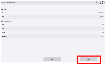 5.幅、楕円体高、スキャンポイント数、推定時間が表示されます。