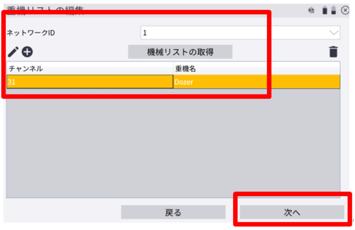 ※設定されたチャンネル・ネットワークIDは、重機側でも設定を行います。