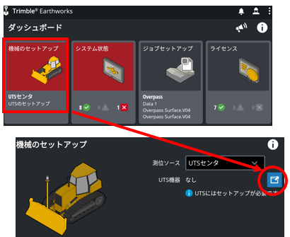 トータルステーションを使用したマシンコントロールシステムで重機を稼働させるための、各デバイスが装着されていること。