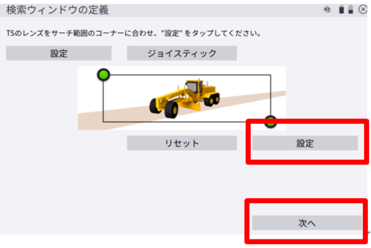 3.TSを左上に向けて<設定>を選択します。続けてTSを右下に向けて<設定>を選択します。