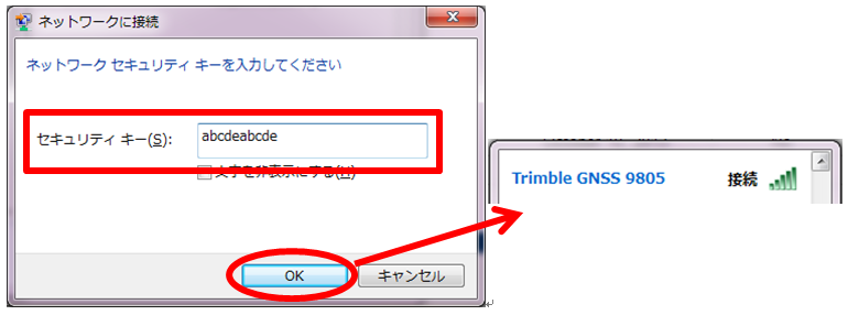5.セキュリティキーの入力が求められるので、<abcdeabcde>を入力し、<OK>を選択します。GNSS受信機と接続されます。