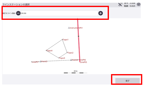 3.ラインの測点を入力または画面上のラインを直接選択して設定後<完了>を選択後、誘導画面に変わります。