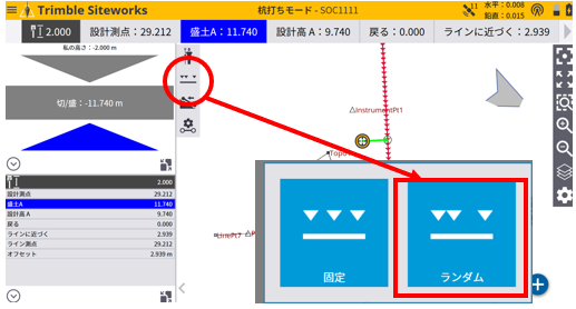 4.誘導中画面下部のアイコンを選択し<ランダム>を選択すると、ラインに対して法線の位置で誘導が行われます。