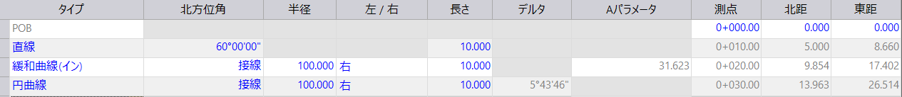 5) 卵型クロソイドのパラメータをAパラメータに入力します。