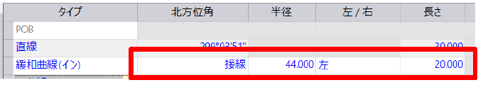 北方位角は<接線>を設定し、半径・左/右・長さを入力します。