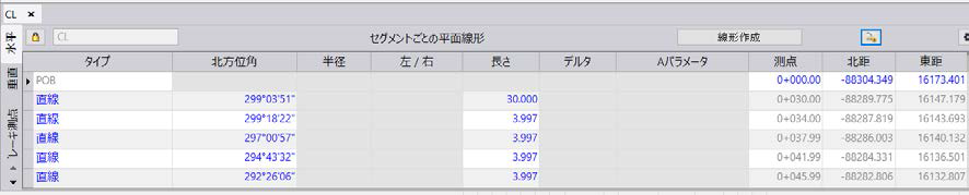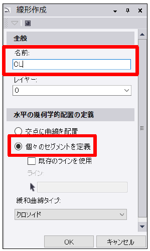 ※CADオブジェクトには緩和曲線がないため、ポリラインからの線形作成では緩和曲線が作成されません。