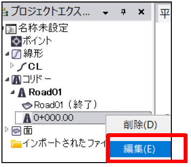 プロジェクトエクスプローラから編集を行うコリドーテンプレートを選択します。右クリック後、<編集>を選択します。
