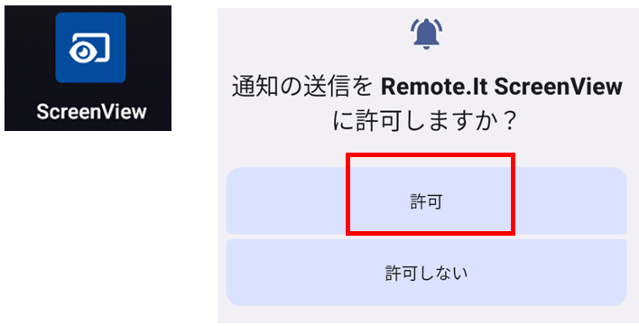8) ScreenViewアプリに戻り、接続が許可された状態である場合、下記メッセージが表示され、接続可能な状態となります。