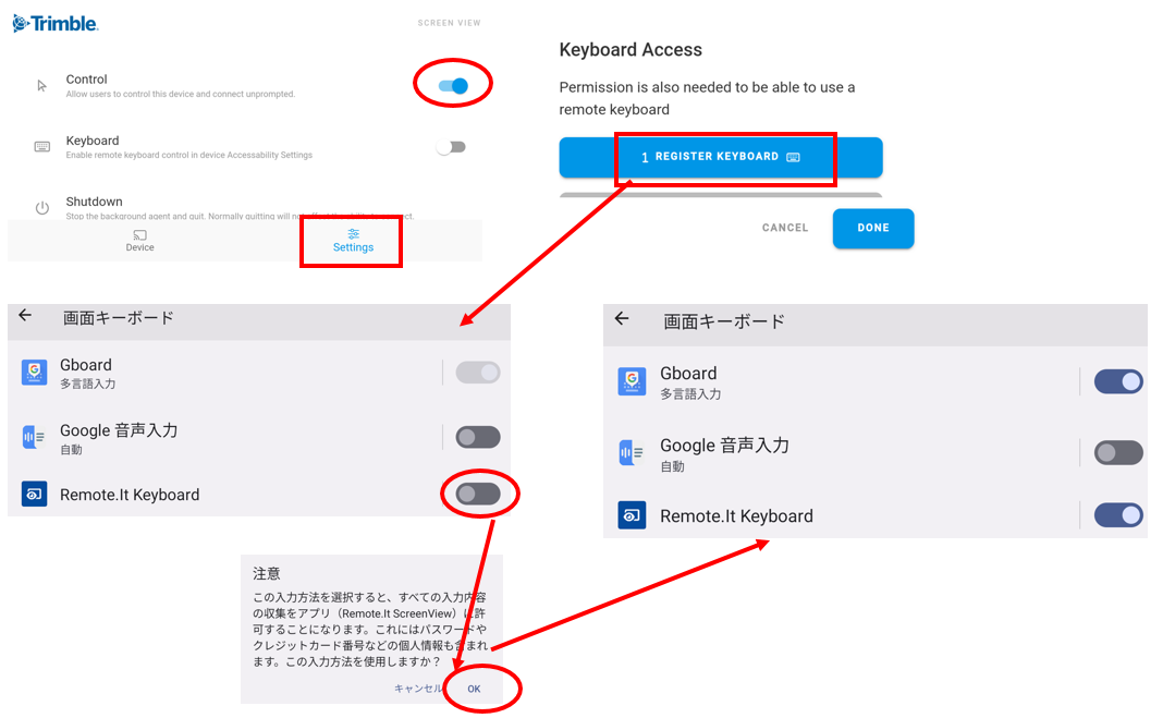 9) 遠隔操作でPCのキーボードを使用したい場合、アプリの設定より下記設定にてキーボードの種類を設定します。