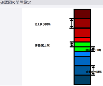 3.切土/盛土の色設定は、<メニュー> → <設定> →<観測>にて、間隔の設定を行います。