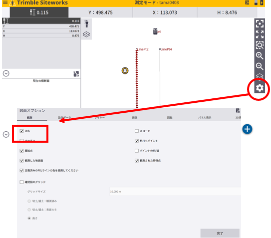 5.点名は図面オプションの<点名>に☑をつけて表示させます。