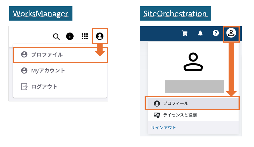 SiteOrchestration:アカウントアイコン→「プロフィール」