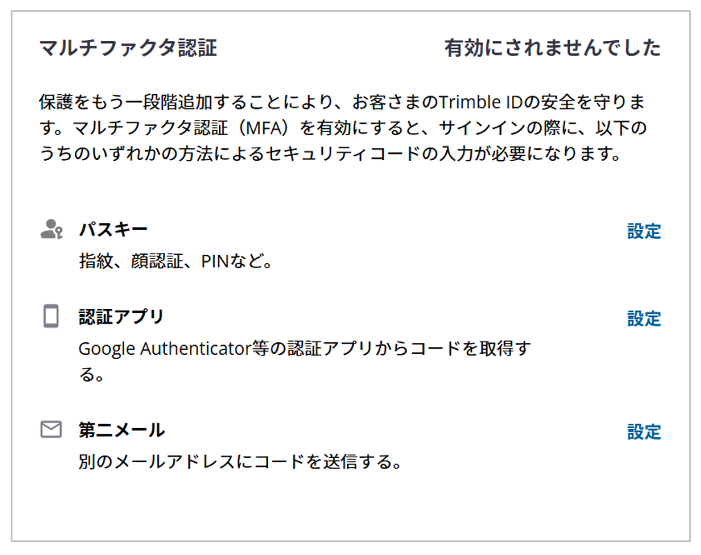 Trimble IDに登録できる認証方法は以下の3種類があります。