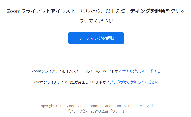2. ご利用の端末に、すでにZoomのアプリケーションをインストールしている場合は「ミーティングを起動」をクリックします(本手順の4.に該当します)