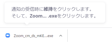 Zoomのアプリケーションをインストールされていない場合は「今すぐダウンロード」をクリックしてexeファイルをダウンロードします。 ダウンロードできたexeファイルをクリックしてインストールを行います。