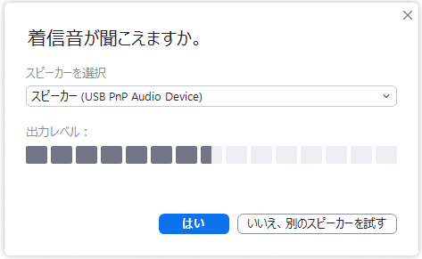 6. 音が聞こえるか確認します。 マイクの確認では、何か声を発すると、あとからその声が聞こえてくればOKです。 |